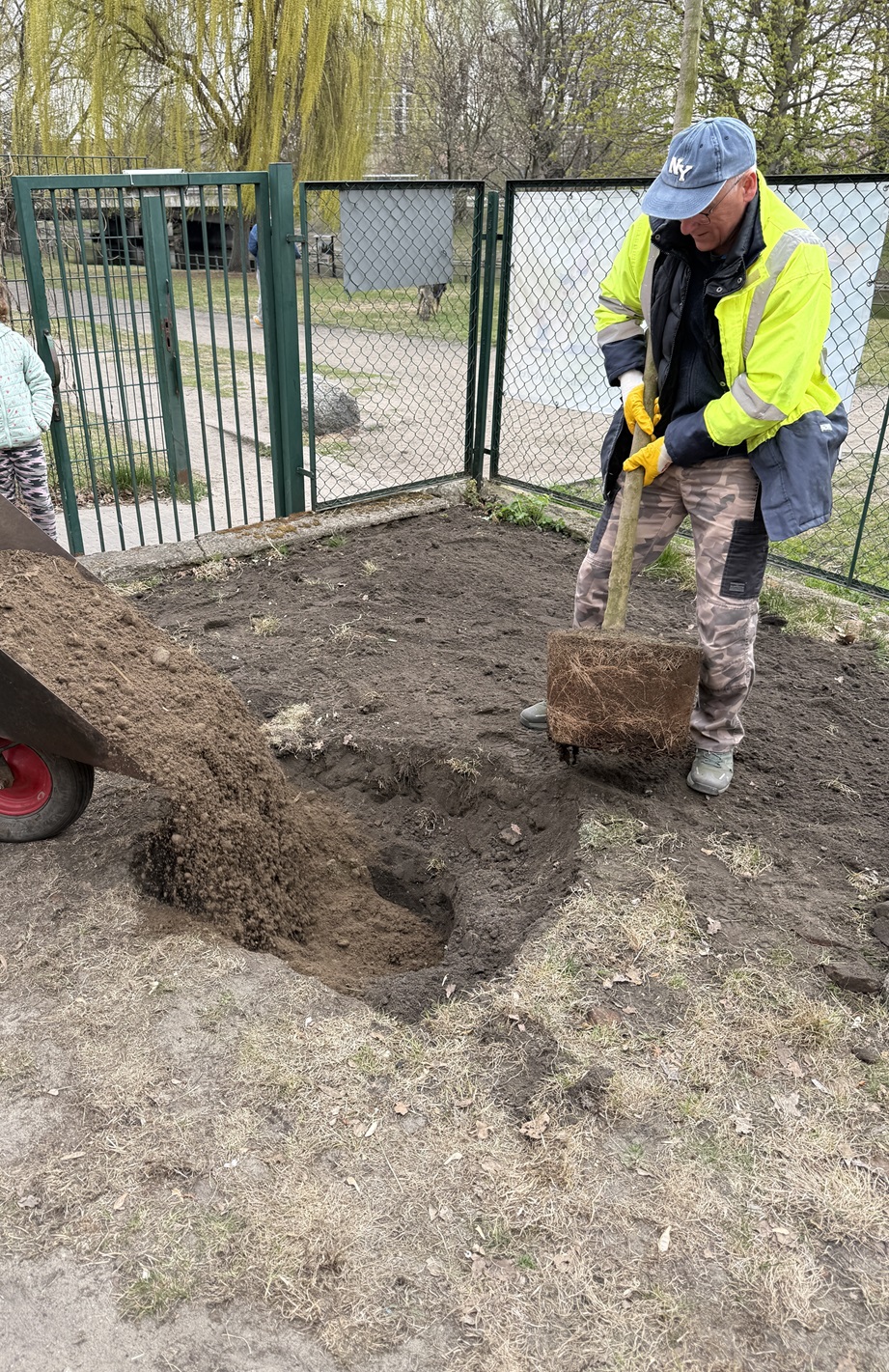 Wspólnie z 6-latkami posadziliśmy 5 grabów kolumnowych i 1 klon kulisty, który jest drzewem ulubionym przez kłosy. Często wiją w nim gniazda, możliwe, że kolejnej wiosny dzieci będą świadkami pierwszych podlotków młodych ptaszków.